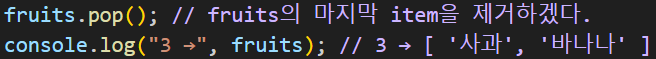 - pop : 배열의 마지막 item을 제거하는 메서드