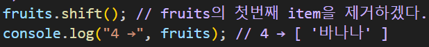 - shift : 배열의 첫번째 item을 제거하는 메서드
