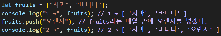 - push : 배열 마지막 자리에 item을 추가하는 메서드