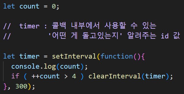 하지만 지금 표시된 부분을 미리 콜백함수로 선언했다면, timer는 이렇게 사용할 수 있을 것이다.